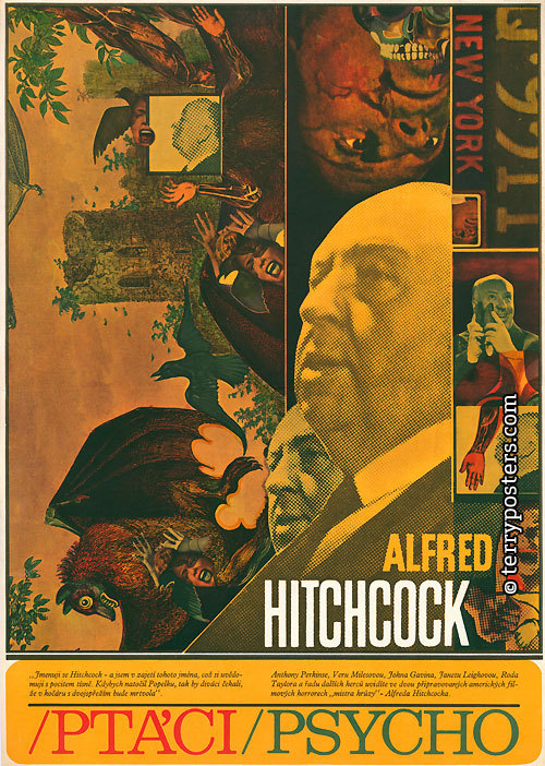 Filmový plagát k filmom Ptáci a Psycho od Alfreda Hitchcocka
